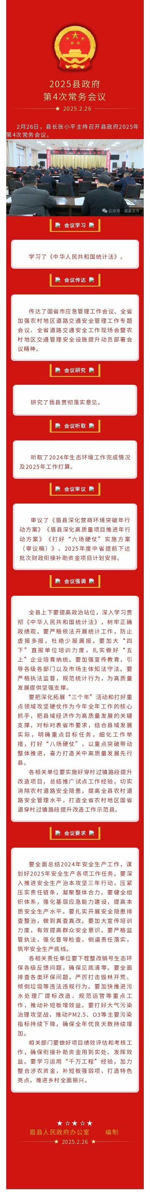 ?原文鏈接:眉縣政府召開2025年第4次常務會議
