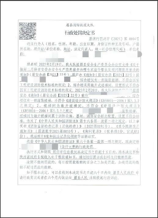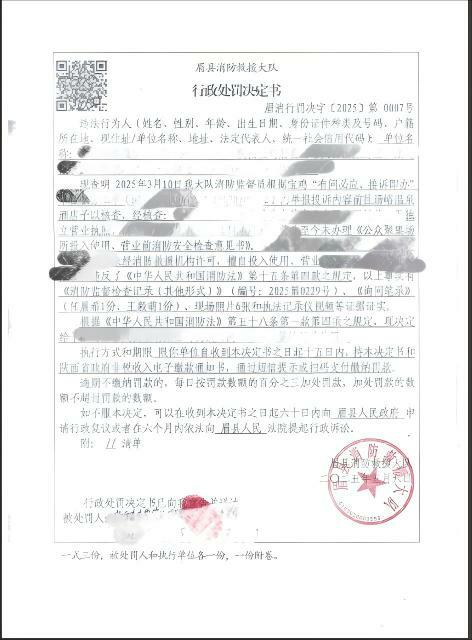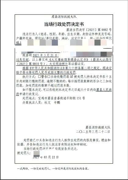 眉縣消防救援大隊2025年行政處罰及行政許可執法公開